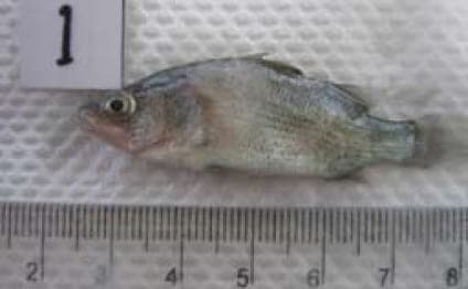 Picture 3: Typical ‘knife edge' tail and abdominal distension characteristic of Big Belly in juvenile barramundi