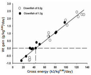 Table 3. Daily energy and protein requirements of anemone clownfish Amphiprion percula at 27°C.