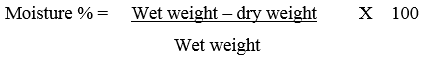 The moisture content was calculated by determining the difference in weight before and after drying one gram of the sample in a drying oven adjusted at 100 – 105 Cº, as described by AOAC (1990). Then the moisture content was calculated using the following formula: