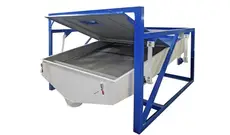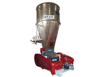 Hopper lids are hinged to swing open for filling. Standard hoppers have 6 cu. ft capacities. The hoppers are heavy 14 ga. Mild steel or 304 stainless steel. Three vertical sides and 45 vertical sid