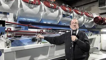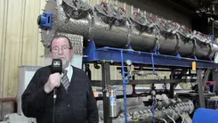 Engineer Josef Barbi, President of E.S.E. & Intec, presents a fully jacketed stainless-steel thermal conditioner, enabling full pre-cooking before extrusion.
