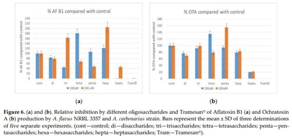 Moreover, the production via synthesis of the active moiety of Tramesan© could facilitate its widespread use in agriculture. In conclusion, the active part of the T. versicolor polysaccharide could be a possible new eco-friendly tool for mycotoxin control.