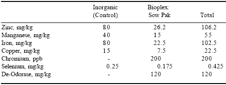 Table 4.The contribution of the regular inorganic and proposed Bioplex mineral supplements (Sow Pak) to total diet mineral content.