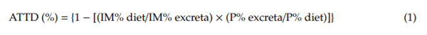 where IM is the content of dietary marker (TiO2).
