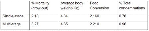 Single stage and multistage incubation system comparison: Our group conducted a series ofcomparisons between Chickmaster multi-stage and single-stage systems in a commercial broiler hatchery. The results (Wineland et al. 2008) demonstrated improved body weight, feed conversion and leg health (see representative tables below from one of the experiments). Where you are able to control the incubation parameters more precisely for a specific age of embryo you can see improvements in performance. Single stage incubation will have an economic return if an investment is made, but like all incubation systems, the hatchery manager must be aware how his incubators are running and what his hatchling quality is like so he can fine tune the incubators.