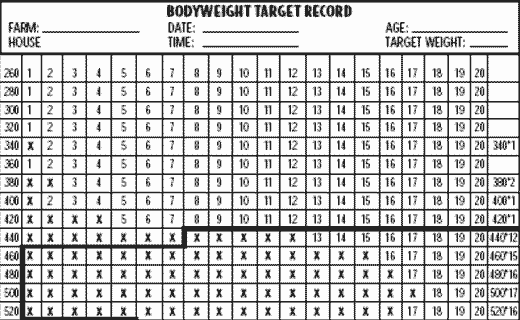 For floor rearing situations, make a lightweight wire netting pen, and then walk into the middle of the flock and surround a group of birds. Individually weigh all the birds in that pen.
