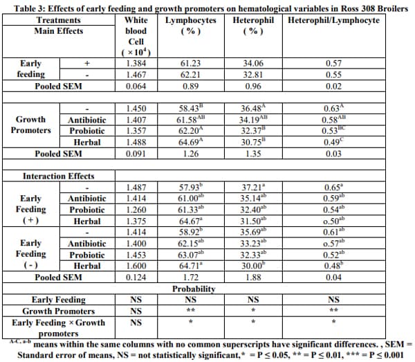Keywords: early feeding supplement, immunity, bacteriology, growth promoters, blood picture.