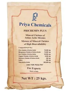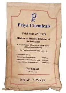 PRICHEMIN ZMC CONSISTS IN A MIXTURE OF MINERAL CHELATES AND AMINO ACIDS DEVELOPED SPECIALLY FOR POULTRY(LAYERS AND BROILERS) TO IMPROVE F C R , REDUCE MORTALITY AND IMPROVE PRODUCTIVI