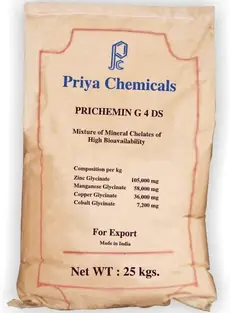 MINERAL GLYCINATE. An Organic Trace Minerals Nutritive value gets reduced during Absorption, and PRICHEMIN-G 4 is the answer. We are ISO 9001-2000 and FAMI-QS certified company manufacturi